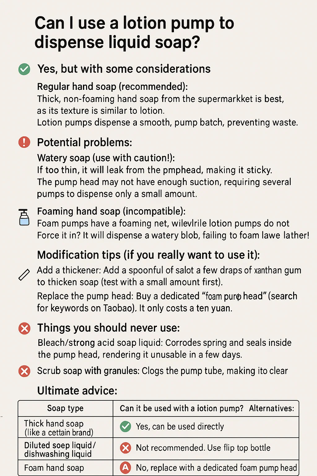 | Tipo di sapone | Funziona con la pompa per lozione? | Soluzione migliore |